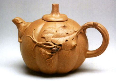 塑器造型一般稱為“花貨”,是對雕塑性器皿及帶有浮雕、半圓雕裝飾器皿造型的統(tǒng)稱。將生活中所見的各種自然形象和各種物象的形態(tài)透過藝術(shù)手法,設(shè)計成器皿造型,如將松竹梅等形象制成各種樹樁形造型?;蛘呤窃趫A器及方器選型上運用雕、鏤、捏塑等手法,將自然形體變化為造型的部份,如壺的嘴、把、蓋、鈕,或者是在造型的顯見部位施以簡潔的堆雕裝飾。壺體上這些堆雕,總是要求寧簡勿繁,做到主次分明,以達(dá)到視覺上的和諧與平衡。這種壺藝造型規(guī)則是“源于自然,而高于自然,造型不僅應(yīng)具有適度性的藝術(shù)夸張,又應(yīng)著意于風(fēng)格瀟灑”。例如此類壺藝以松竹梅為裝飾題材時,勁松要刻劃出枝干勁拔,針葉挺秀,氣勢鏗鏘;秀竹則要求嫻靜有致,俊逸瀟灑;冬梅又須主干蒼勁,寒中獨俏,素枝閑花,以簡為主,達(dá)到疏中見密,少里寓多,富有活力氣息的藝術(shù)效果。所以,紫砂塑器不僅應(yīng)形象生動,構(gòu)圖簡潔,而且應(yīng)巧妙地利用紫砂泥料的天然色澤來增強(qiáng)其藝術(shù)效果。
