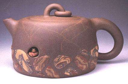 “陽羨(即宜興)瓷壺自明季始盛,上者與金玉等價(jià)”,說的就是陶器中的佼佼者——宜興紫砂茶具。紫砂壺早在北宋初期就已崛起,明代大為流行。其里外都不敷釉,采用當(dāng)?shù)氐淖夏?、紅泥、團(tuán)山泥摶制焙燒而成。由于成陶火溫高,燒結(jié)密致,胎質(zhì)細(xì)膩,既不滲漏,又有肉眼看不見的氣孔,且傳熱不快,不致燙手;若熱天盛茶,不易酸餿;即使冷熱劇變,也不會(huì)破裂 。...