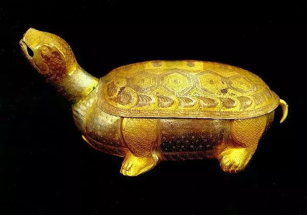 鎏金銀龜盒(放茶粉用)