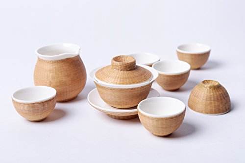 到了清朝,市面上出現(xiàn)了一種竹編茶具,此類茶具是由瓷胎搭配外部竹編包裹而成,內(nèi)胎多為陶瓷材質(zhì),包裹部分選用精挑 細(xì)選的慈竹,經(jīng)過(guò)破竹、去節(jié)、劃絲等十幾道工序,加工后的竹絲細(xì)如青絲,經(jīng)上色處理后,按茶具的形態(tài)大小編織而成,形成嚴(yán)密包裹胎體的外衣。且在泡茶過(guò)程中加上竹編外衣的保護(hù),可 減少茶具對(duì)皮膚造成的灼熱感。