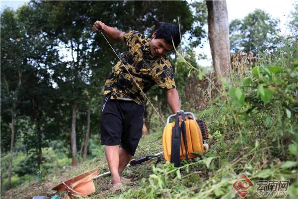 此時(shí),娜四正在茶地里查看茶樹的生長情況,時(shí)不時(shí)用鋤頭翻翻地、培培土;扎藥則拿著電動(dòng)割草機(jī)清理隔壁山坡上的雜草。割草機(jī)的聲音很嘈雜,掩蓋了屋前潺潺的流水聲,停頓的間隙與山林間的蟬鳴相互唱和,卻全然沒有打擾到娜四小兒子在她身后的背簍里熟睡。“這個(gè)季節(jié)種茶容易活,我已經(jīng)泡好了茶籽,等那片地清理出來,我們準(zhǔn)備開溝種上茶,還有之前種了茶籽沒有活的地方,也要補(bǔ)種一下。”娜四介紹,因?yàn)榍謇砉ぷ鞅容^復(fù)雜,夫妻倆打算在小木屋住一晚,天亮了早早開工。