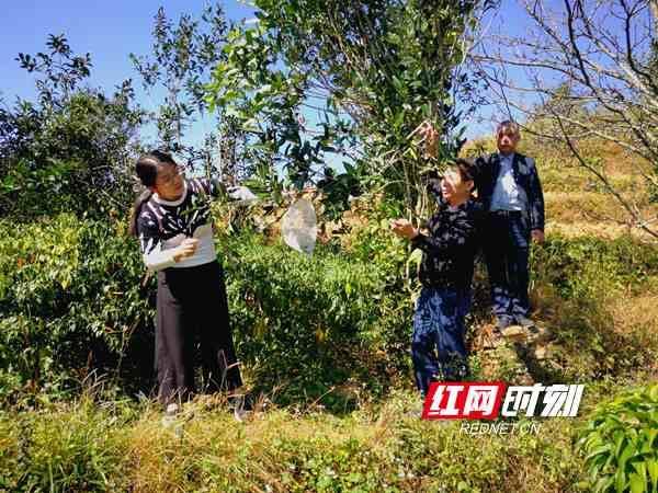 銀霞(左)與省茶科所所長(zhǎng)張曙光(中)等調(diào)查城步縣峒茶野生茶資源。