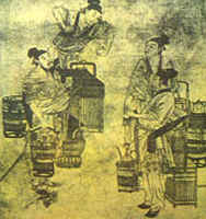 我國以茶為題材的古代繪畫,現(xiàn)存或有文獻(xiàn)記載的多為唐代以后的作品。如唐代的《調(diào)琴啜茗圖卷》;南宋劉松年的《斗茶圖卷》;元代趙孟俯的《斗茶圖》;明代唐寅的《事茗圖》,文征明的《惠山茶會圖》、《烹茶圖》,丁云鵬的《玉川煮茶圖》;等等。