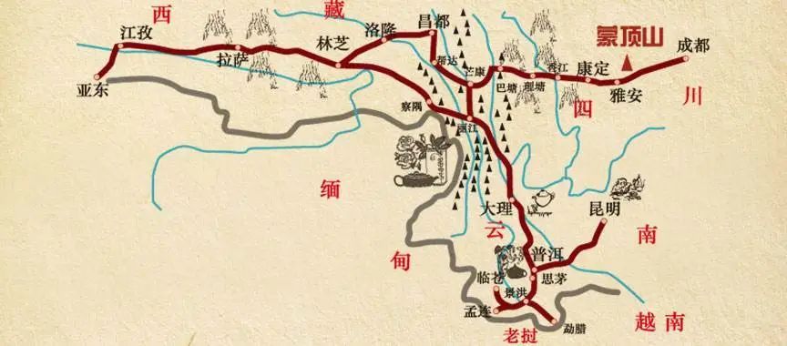 之后,順其自然地就出現(xiàn)了滿(mǎn)足這種貿(mào)易形式的貿(mào)易通道。古代交通方式有限,“馬幫”就成了為交換“馬匹”和“茶葉”貿(mào)易提供服務(wù)的運(yùn)輸商。隨著“茶馬互市”規(guī)模的擴(kuò)大,一條條古道被相繼探索發(fā)展出來(lái),隨著歷史的發(fā)展,人們逐步將這些道路統(tǒng)稱(chēng)為了“茶馬古道”,一個(gè)聽(tīng)起來(lái)還有點(diǎn)浪漫的名字。