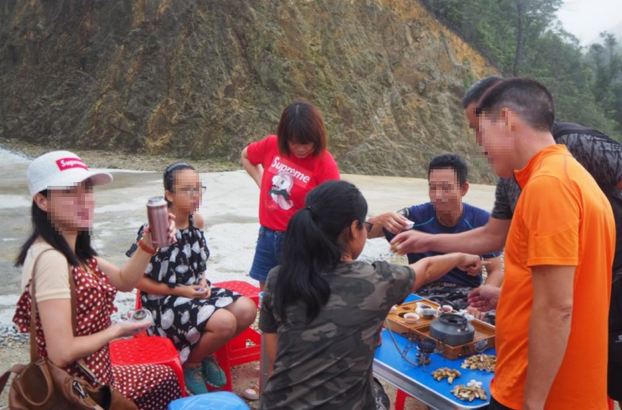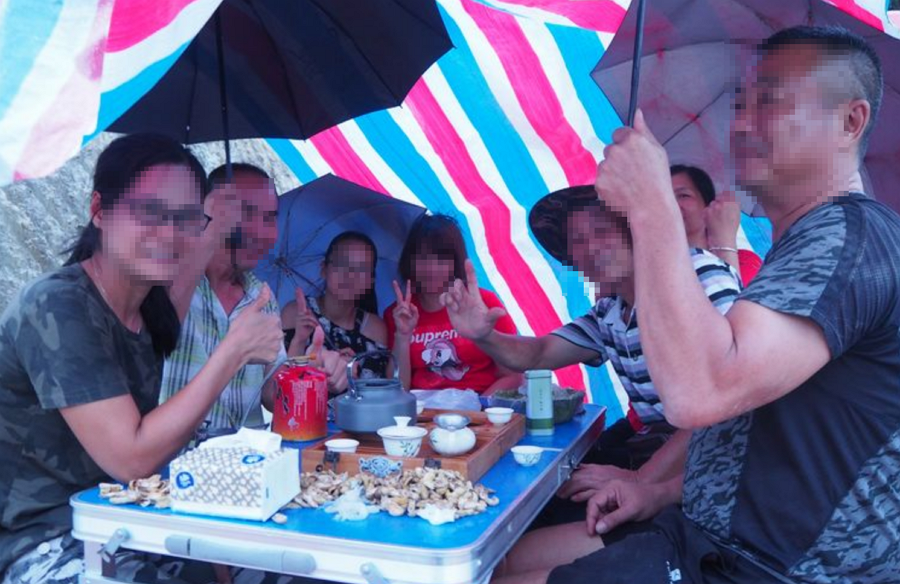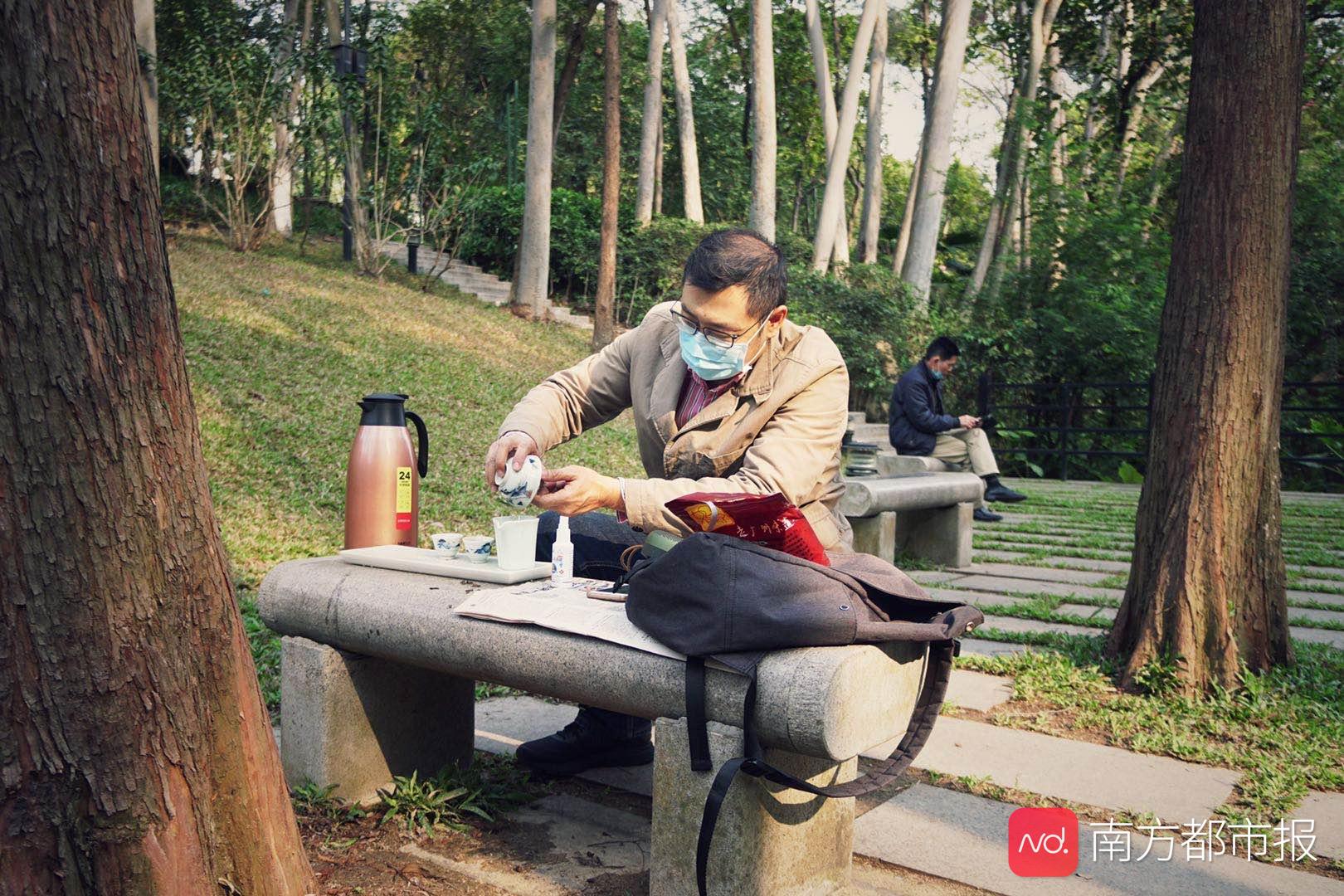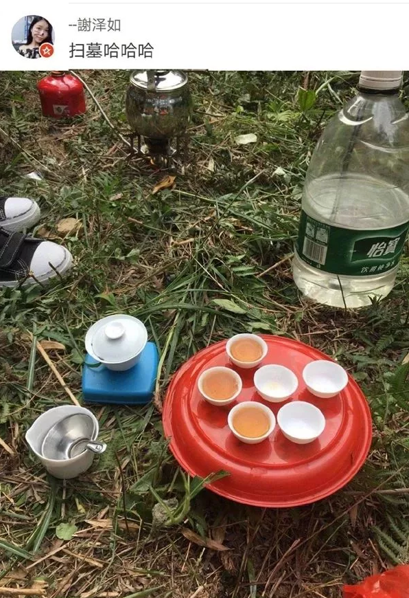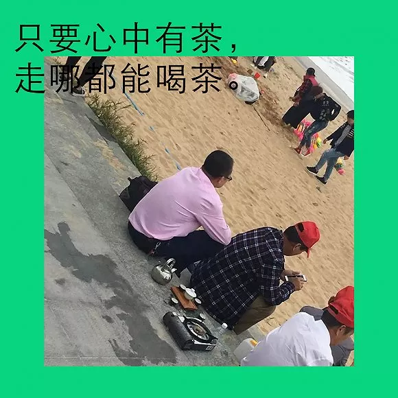 即使是去海邊玩,出去爬山和戶外徒步的時候,也不忘泡上工夫茶,下雨的時候打上傘繼續(xù)喝。