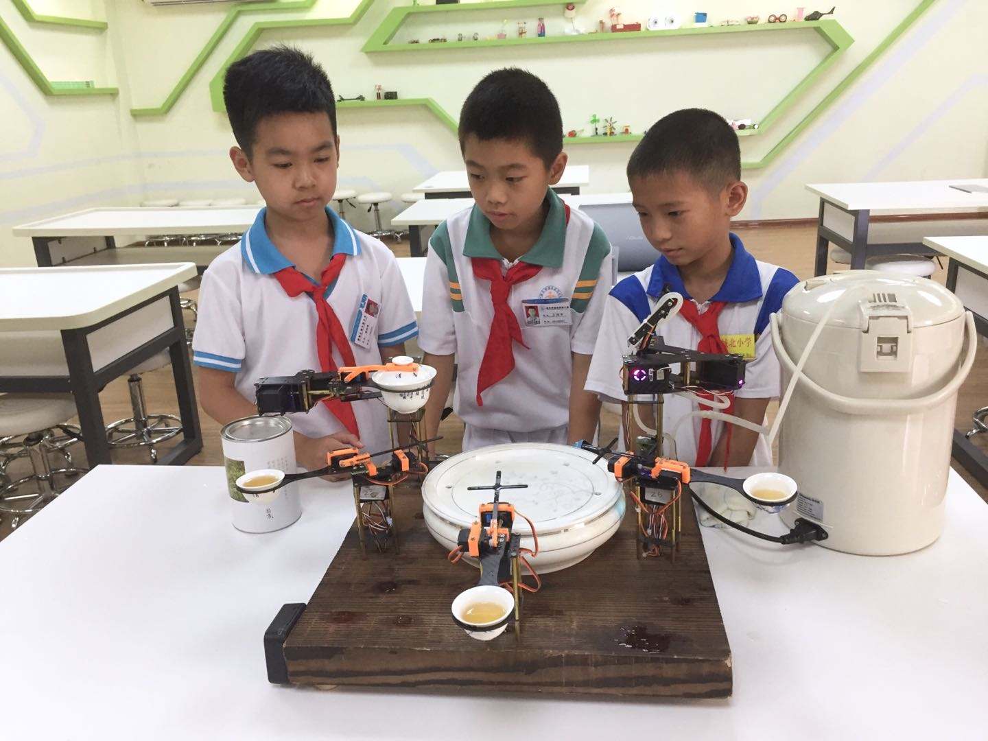 三個潮汕小朋友甚至還發(fā)明了一個自動沖茶的小機器人。