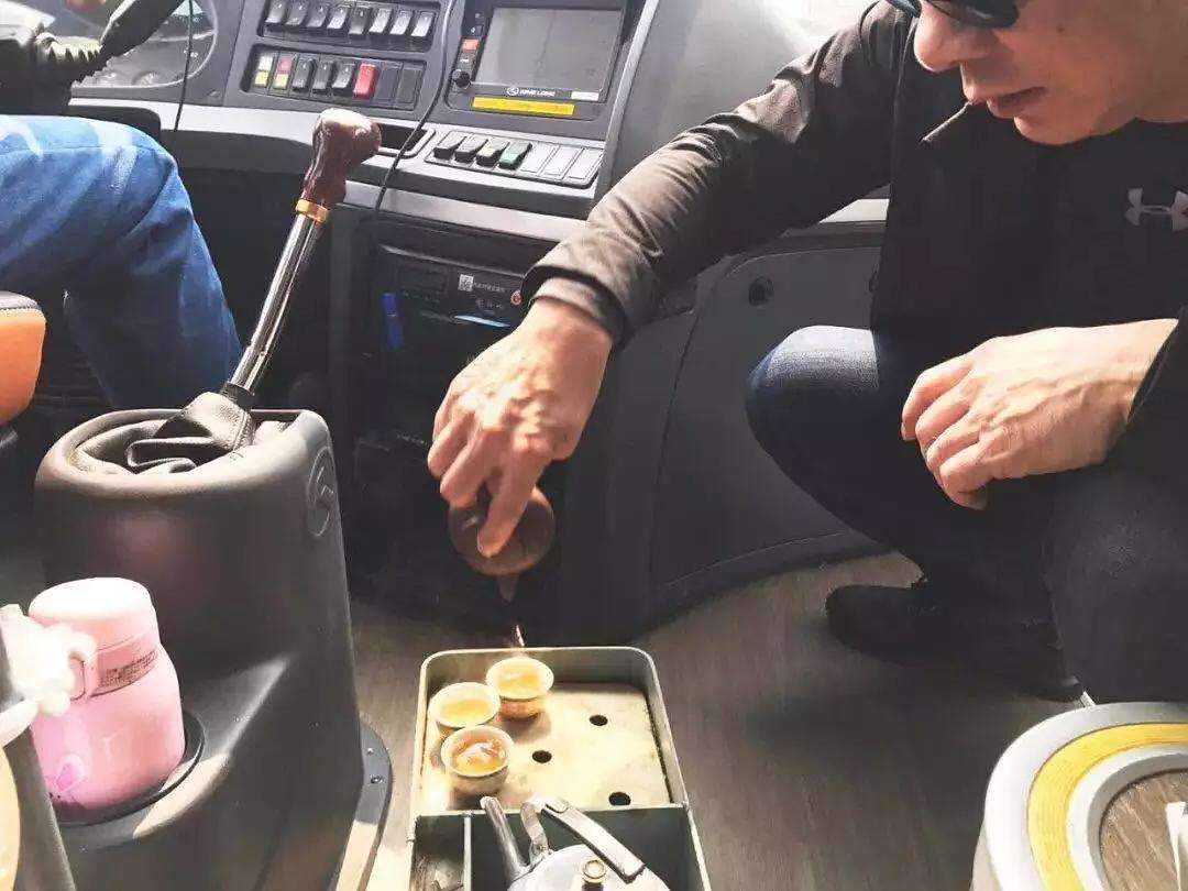 對潮汕人來說沒有什么能夠阻擋喝茶的心,不少潮汕司機還會在車上配備工夫茶具。