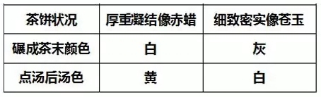 關(guān)于鑒賞,宋徽宗趙佶主要是通過制作好的茶餅外形及其在點茶時的茶湯顏色來進行。具體鑒賞方法通過下面三個表格的對比我們便可一目了然,掌握如何從關(guān)鍵之處鑒別、明白茶葉的各項品質(zhì)。