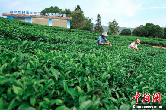 10月28日,廣西昭平縣江口村生態(tài)茶示范基地內(nèi),茶農(nóng)在采摘茶葉。該茶園基地總面積86畝,由中航集團(tuán)幫扶援建,以生產(chǎn)“生態(tài)有機(jī)茶”為發(fā)展定位。