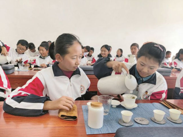 為了培養(yǎng)同學(xué)們的動(dòng)手能力,激發(fā)對(duì)中華茶文化的學(xué)習(xí)興趣,提高綜合文化素養(yǎng),拉薩市教育局青少年實(shí)踐基地定期組織學(xué)生開(kāi)展茶文化學(xué)習(xí)實(shí)踐活動(dòng),在茶香氤氳中,學(xué)生們溫杯潔具、觀茶敬茶,感受茶的雅致魅力,體會(huì)茶文化的深厚內(nèi)涵。